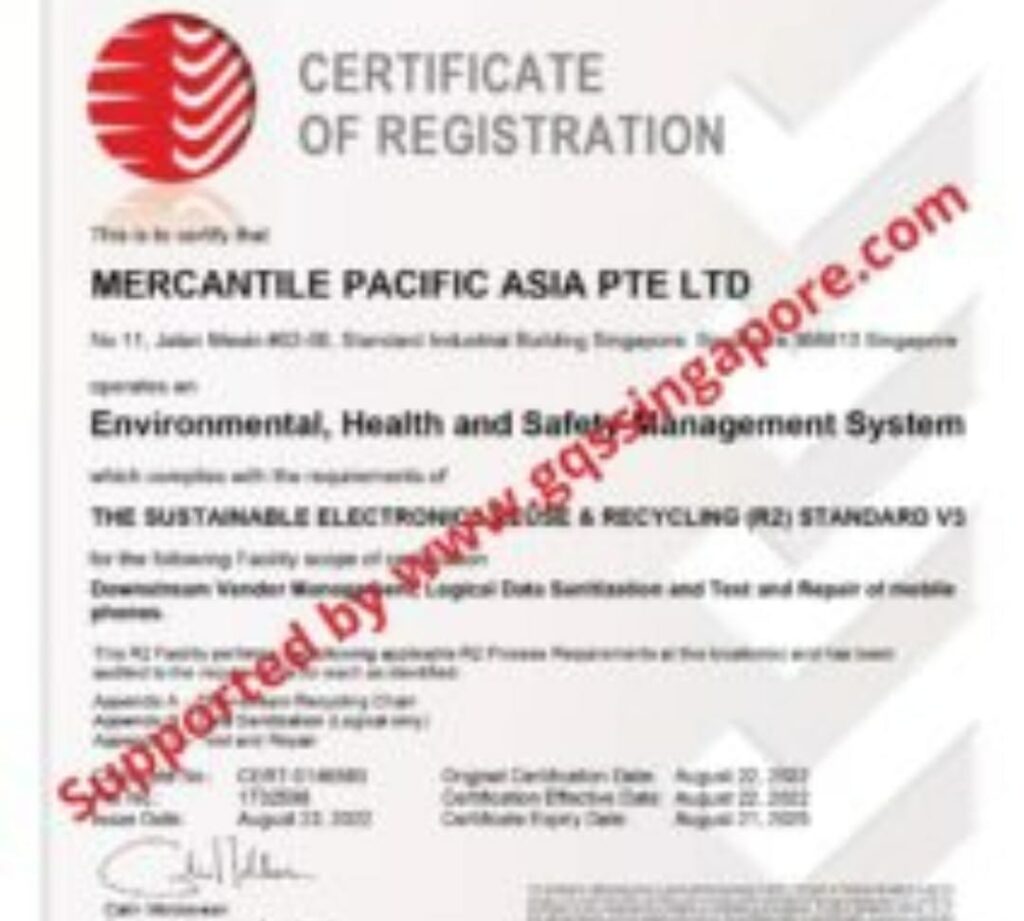 Mercantile Singapore is R2 v3 certified