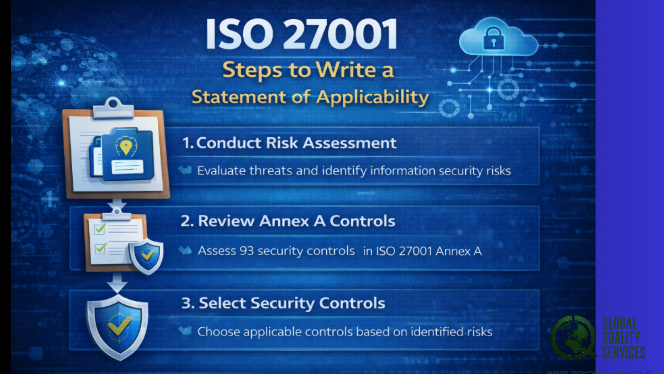 For organizations aiming to build a mature and compliant ISMS, learning how to write an ISO 27001 SoA correctly is a critical step toward achieving strong information security management. Connect with Global Quality Services and we will help you more.